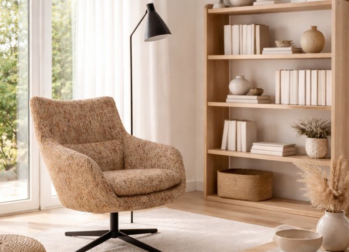 Kies voor een vaste voet voor een rustige, stabiele look, of een draaivoet voor een licht, speels karakter. Met lage of hoge rug stem je het comfort af op jouw zitstijl. Combineer met de bijpassende voetbank voor extra ontspanning.