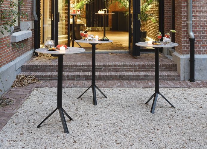 WE00910De Fizz-bistrotafel van Joli is verkrijgbaar met een vierpoot- of driepootonderstel op 4 verschillende hoogtes. Bij de driepootvariant is de tafel bovendien inklapbaar dankzij het slimme kliksysteem. U kunt kiezen uit ronde of vierkante uitvoeringen in verschillende afmetingen, en er is een breed scala aan kleuren voor het onderstel beschikbaar. Bovendien zijn er diverse keramische bladen verkrijgbaar, waardoor u de perfecte bistrotafel kunt samenstellen voor uw feestelijke of dagelijkse setting.
