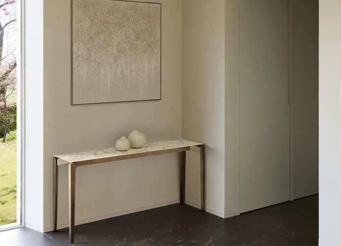 WE00911De Layers-console van Joli straalt een luchtig en elegant design uit. Het onderstel geeft de illusie van een zwevend keramisch blad, wat zorgt voor een opvallend en verfijnd effect in uw interieur. De console is verkrijgbaar in lengtes van 160 cm of 200 cm en kan volledig worden afgestemd dankzij het ruime aanbod aan keramische bladen en onderstelkleuren, zodat u een console samenstelt die perfect past bij uw stijl en ruimte.