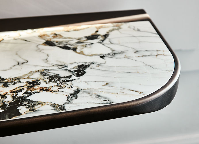 Het elegante onderstel in Brushed Bronze of Brushed Grey geeft het geheel een moderne, tijdloze uitstraling. De Terminal Keramik Premium is meer dan een console: het is een stijlvol statement in elk interieur.