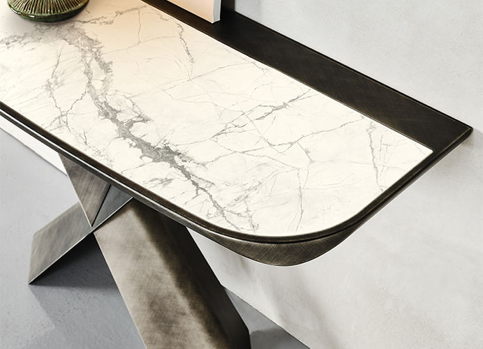 WE00971De Terminal Keramik Premium console brengt elegantie en functionaliteit samen in een verfijnd designstuk. Dankzij het keramische blad met luxueuze marmerlook straalt deze console pure klasse uit en past ze moeiteloos in zowel de inkomhal als andere leefruimtes.