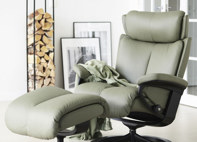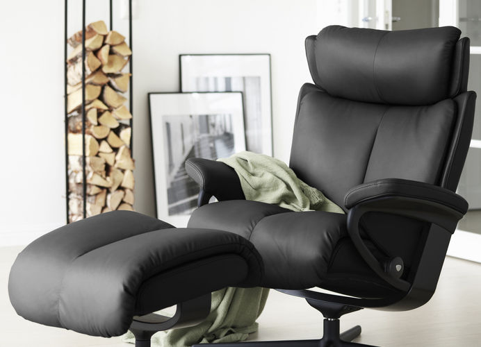 WE00903De Relax Magic van Stressless biedt ongeëvenaard comfort dankzij het Magic Recline-systeem, dat moeiteloos van zitten naar volledig ontspannen bewegen mogelijk maakt. De stoel past zich automatisch aan jouw lichaam aan en ondersteunt rug, nek en hoofd optimaal. Verkrijgbaar in diverse stijlen en kleuren, zodat comfort en design perfect in jouw interieur passen.