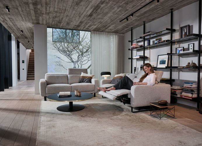WE00811De Salon Aron van het Belgische merk Recor is een moderne en hoogwaardige zitbank, die uitblinkt in comfort en flexibiliteit.