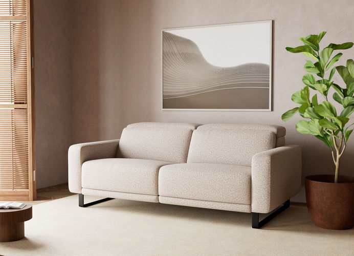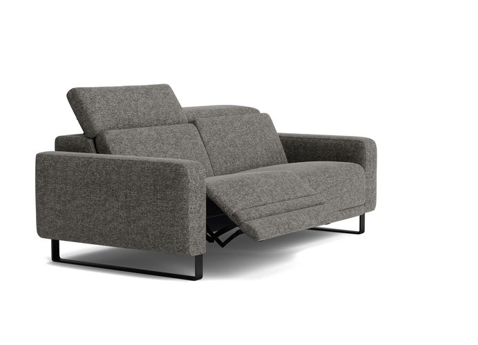 Hij biedt optionele elektrische relaxfuncties en kan dicht tegen de muur worden geplaatst. Verkrijgbaar in diverse stoffen, waaronder vlekbestendige opties, en luxe leder, met een stevig metalen frame dat stabiliteit en een tijdloze uitstraling garandeert.