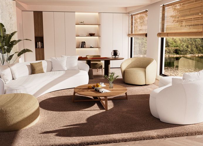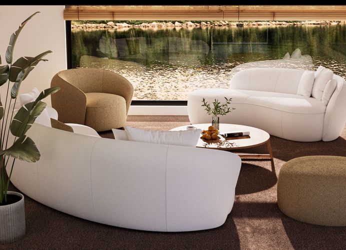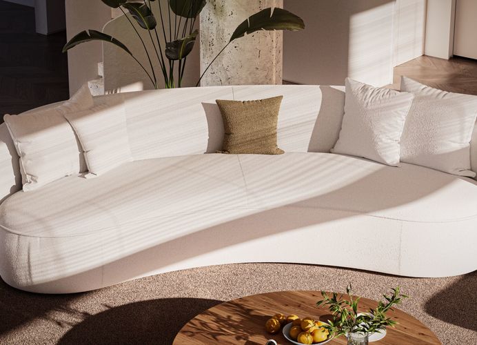 WE00914De Mogador-zetel van Passe Partout combineert een zachte, organische vormgeving met uitzonderlijk zitcomfort. Dankzij de harmonieuze lijnen en uitnodigende kussens straalt deze sofa rust en elegantie uit in elk interieur.