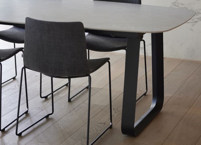 WE00424De Curve van Joli is een elegante en zeer comfortabele stoel op sledevoet, perfect voor zowel binnen- als buitengebruik. Verkrijgbaar met of zonder armleuningen, met een keuze uit verschillende kleuren voor het onderstel en een ruim aanbod aan stoffen of zelfs vegan leather. Zo creëer je eenvoudig een stoel die stijl en comfort perfect combineert.