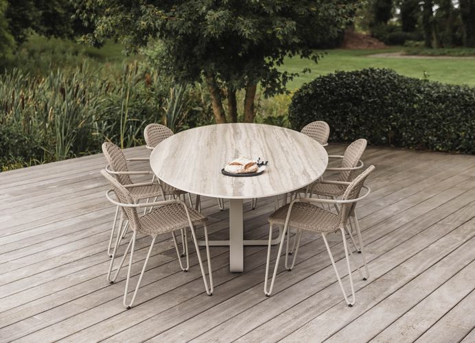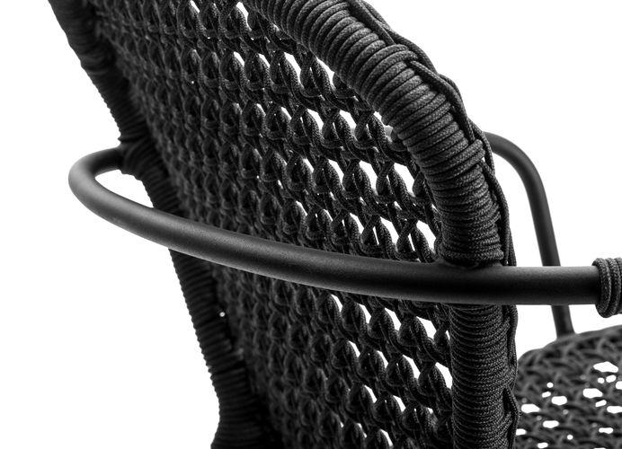 WE00908De Fizz-stoel van Joli is een uiterst comfortabele stoel met een uniek design. Het zitvlak is geïnspireerd op traditioneel rotan, maar vervaardigd van hoogwaardig Italiaans touw, wat zorgt voor een moderne en herkenbare uitstraling. Het touw zit niet alleen heerlijk comfortabel, maar is ook volledig weerbestendig en droogt snel, waardoor de stoel perfect is voor buitengebruik. De Fizz-stoel is verkrijgbaar in de kleuren zwart en lino, zodat hij naadloos past in iedere binnen- of buitenruimte.