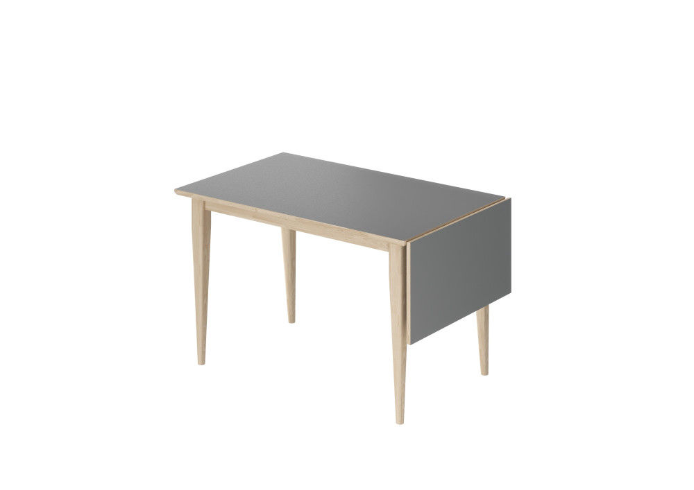 WE00891C-edge is een compacte en stijlvolle keukentafel in eikenhout, afgewerkt met een modern laminaat blad. Ideaal voor kleinere ruimtes. Dankzij de slimme uitklapbare verlenging creëer je in één beweging extra tafelruimte.