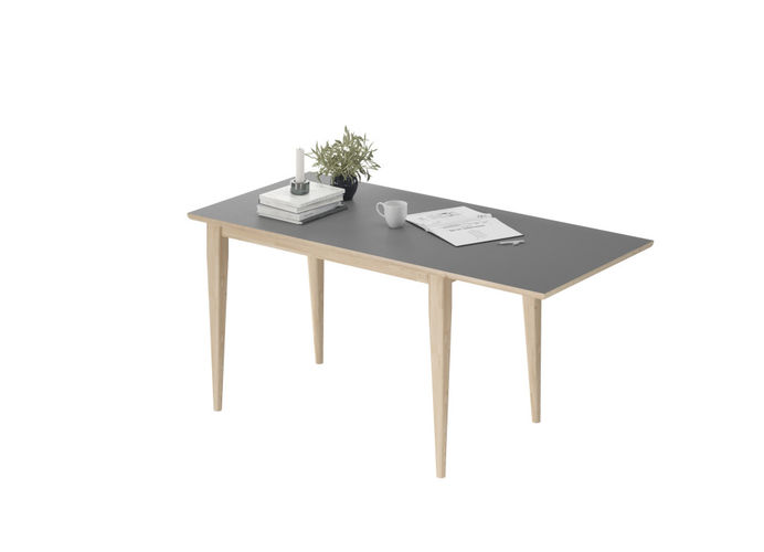 Het duurzame laminaatblad is onderhoudsvriendelijk en perfect voor dagelijks gebruik. De tafel is verkrijgbaar in meerdere afwerkingen en twee formaten: