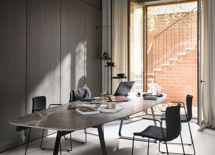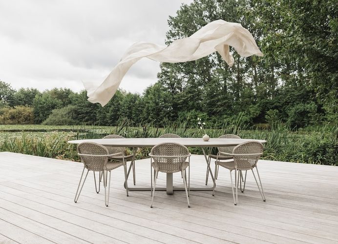 WE00101De tafel Curve van Joli valt meteen op door het strakke ontwerp en het opvallende onderstel. Deze veelzijdige tafel is verkrijgbaar in verschillende vormen en afmetingen, waaronder rechthoekig, faux-ellipse, ellipse of rond, en is ook beschikbaar als verlengbare versie. Dankzij de ruime keuze aan onderstelkleuren en het brede aanbod aan keramische tafelbladen stel je eenvoudig de tafel samen die perfect past in jouw interieur. De Curve is ideaal voor zowel binnen- als buitengebruik.