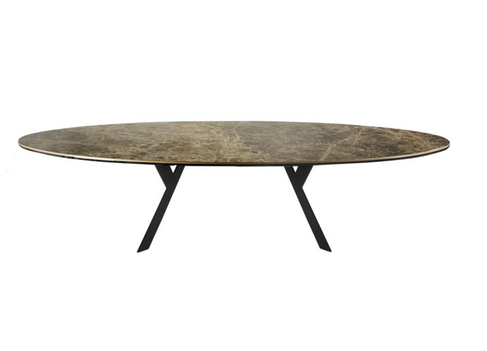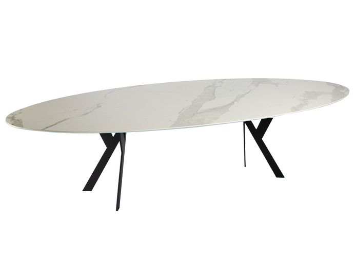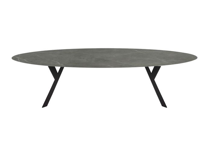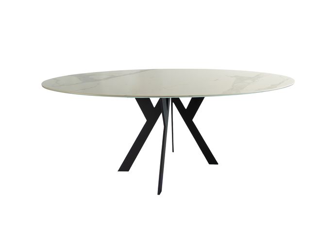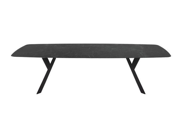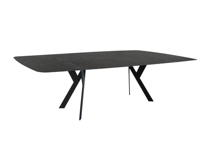 WE00981De Nexus-tafel in keramiek combineert verfijnd design met uitzonderlijke stabiliteit. Het geometrische stalen onderstel met slanke poten van slechts 15 mm zorgt voor een luchtige uitstraling en optimaal zitcomfort.